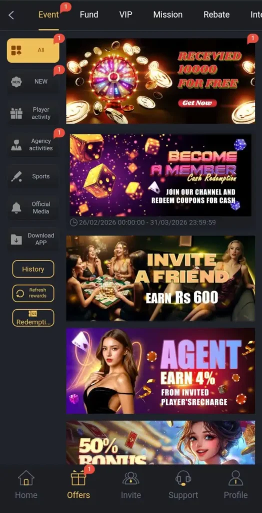 The Card Games category includes both luck-based and skill-based options. Popular games such as Teen Patti, poker, and blackjack allow players to use strategy while enjoying competitive gameplay. This section is ideal for users who enjoy classic table-style gaming experiences.